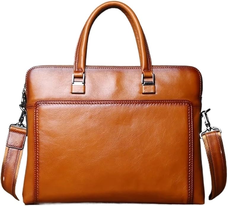 HBJWOV Vintage Leather Men's Briefcase Cowhide Horizontal Handbag Business Crossbody Bag Casual Computer Bag
