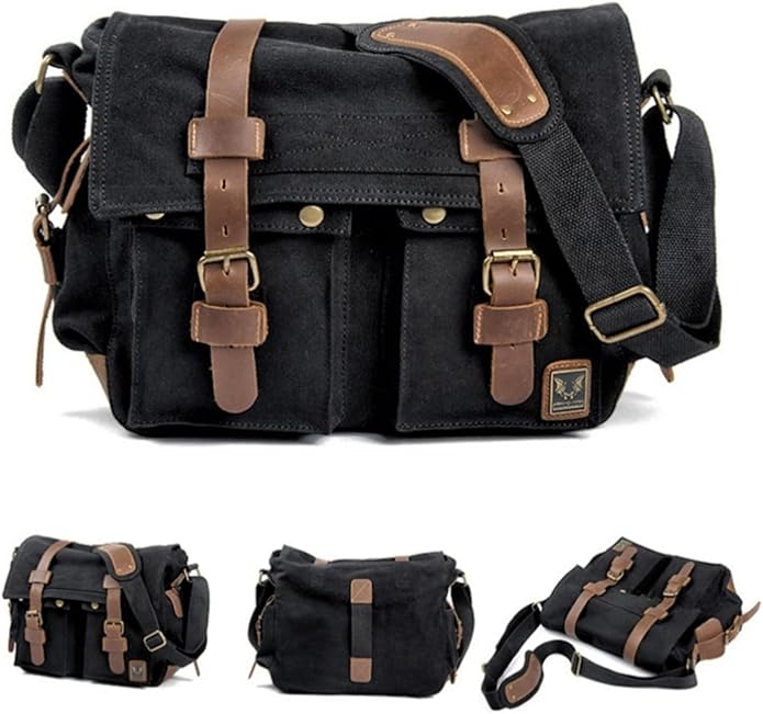 Messenger bag for men, Vintage Leather Canvas Satchel 14in Laptop Crossbody Shoulder Bag