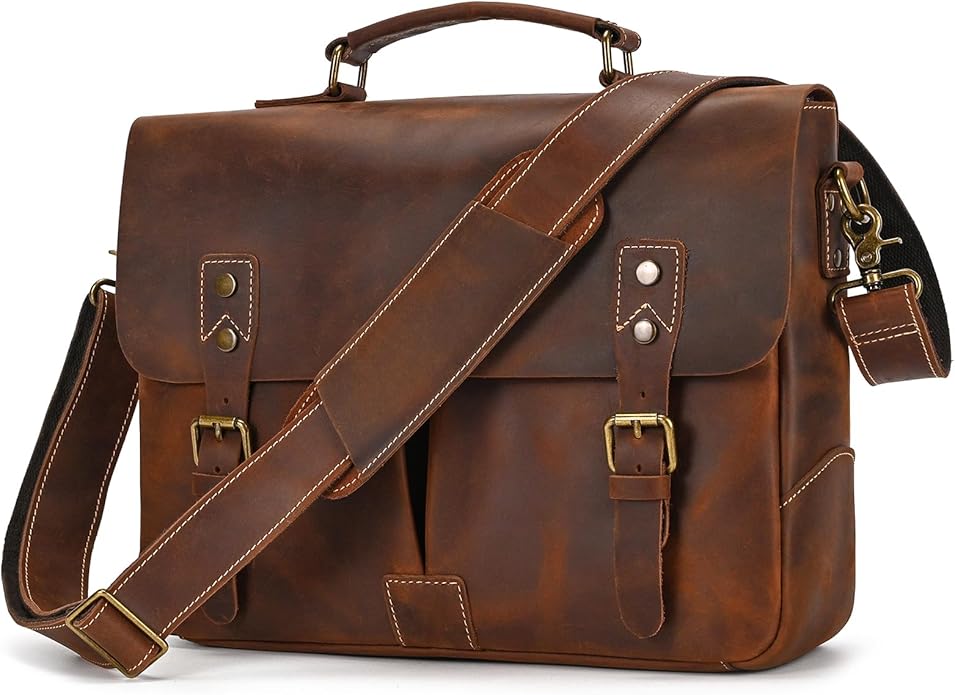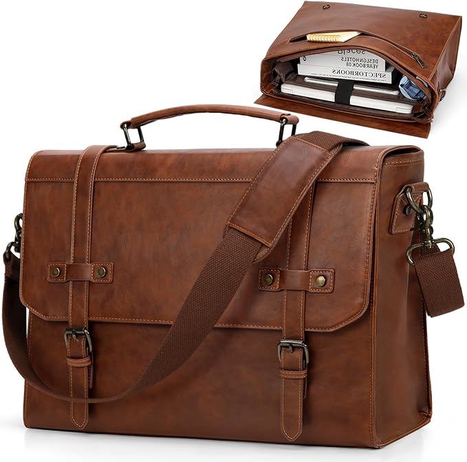 15.6 Inch Leather briefcases Laptop Messenger Shoulder Bags for Men and Women Vintage Satchel Bag for Work, Travel