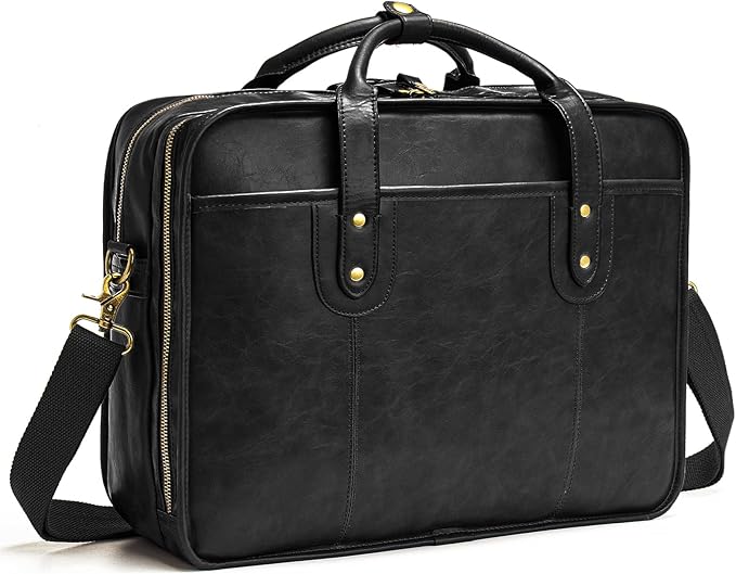 Leather Briefcase for Men Expandable Large 17 Inch Laptop Crossbody Shoulder Bag Business Travel Duffel Attache Case