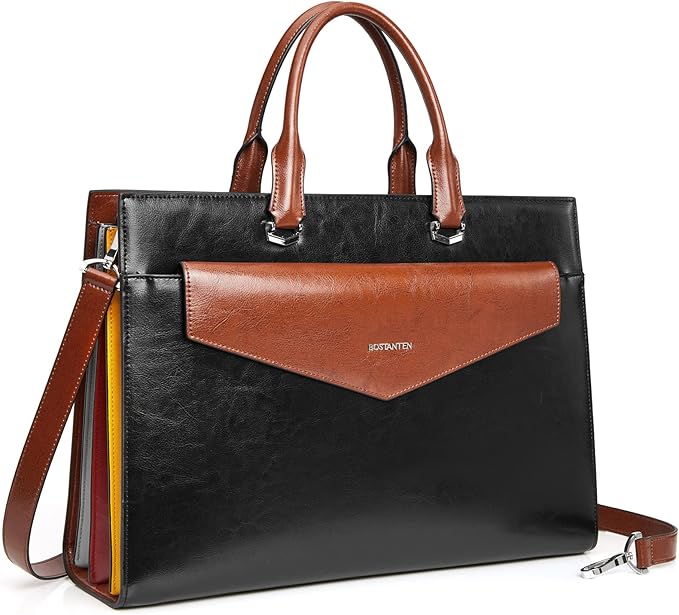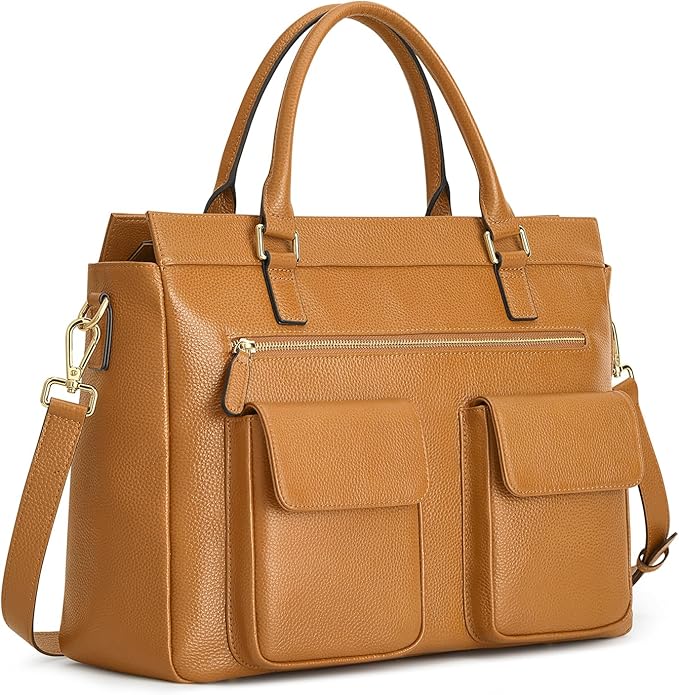 Leather Briefcase for Women, 15 Inches Laptop Bag, Work Tote with Luggage/Shoulder Strap