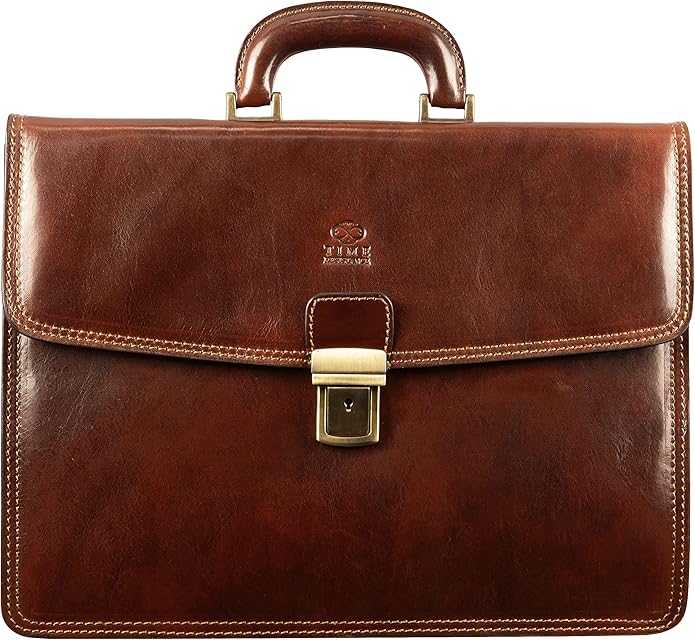 Leather Briefcase for Men - Italian Full Grain Leather Laptop Bag - Messenger Bag - Gift Box Included