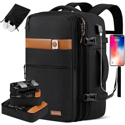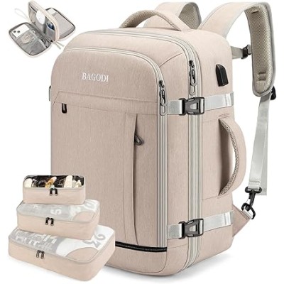 42L Flight Approved Travel Backpack with 4 Packing cubes,Expandable Water-resistant 17Inch Laptop Backpack